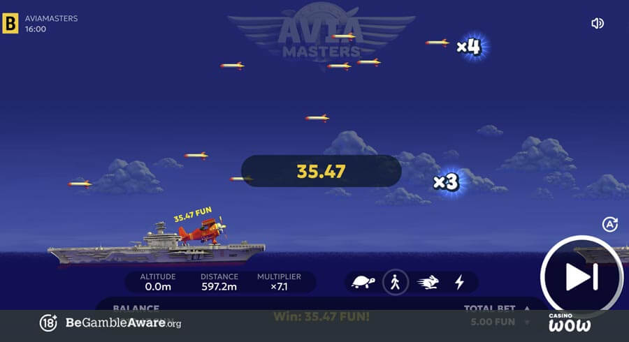 Aviamasters is quite simple and intuitive to play. All you need to do to start the game is select your bet size and press the “Spin” button. The reels will start spinning, and if a winning combination appears, the player will receive the corresponding payout.